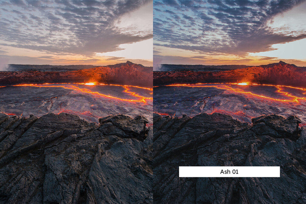 Let your photos erupt into an epic look with these Volcano Lightroom presets and LUTs. They bring out the intensity and beauty of erupting lava and ash, giving your photos an intense look. These presets were made specifically for volcano photos but you can also use them on other photos like cityscapes and streetwear lookbooks. In this bundle, you'll receive presets for Lightroom, profiles for Capture One, and LUTs.